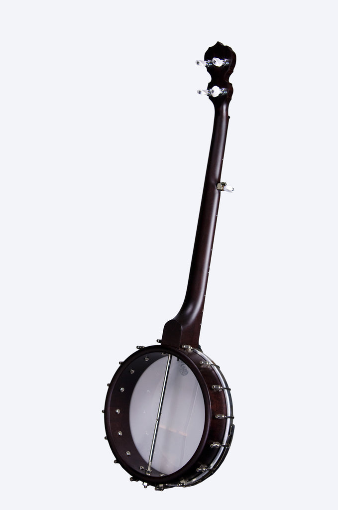 The Classic Goodtime banjos were created to meet customer demands. With the more classic fiddle peghead shape (now found on all Deering Goodtime banjos, the rich dark brown stain, planetary tuning pegs and the addition of spikes at 7,9, 10 for alternate tunings, this light weight maple banjo not only meets but exceeds the features customers wanted and needed. The violin-grade maple rim is made of the same wood used on the professional level Deering models and gives the Goodtime banjo a rich, full, round note distinction.