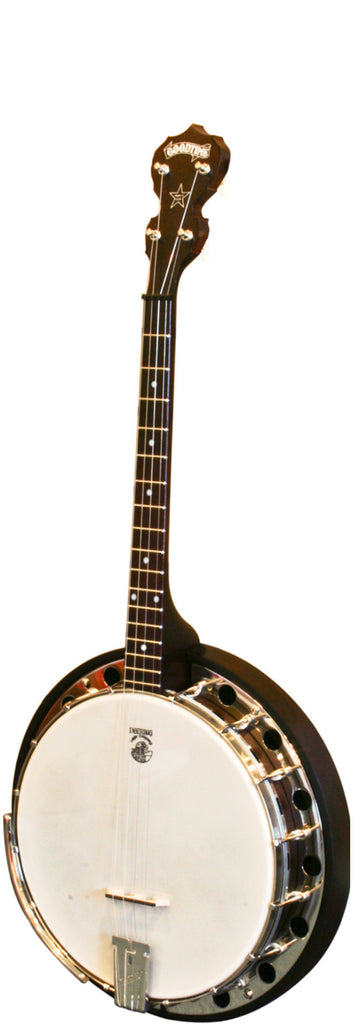 The Classic Goodtime Two 17-Fret Tenor banjo is tuned like a viola in Standard Tenor Banjo Tuning of C,G,D,A.  It can also be tuned like a violin (one octave lower) in the Irish Tenor Tuning of G,D,A,E. The Classic has a traditional look with the Deering peghead shape, a rich brown stain, and planetary banjo Tuners. It's a good tenor banjo, lighter weight with a clear tone that is warm and resonant. Because this model has a resonator it is louder than the open back model. It has an accurate neck that is as comfortable as can be.
