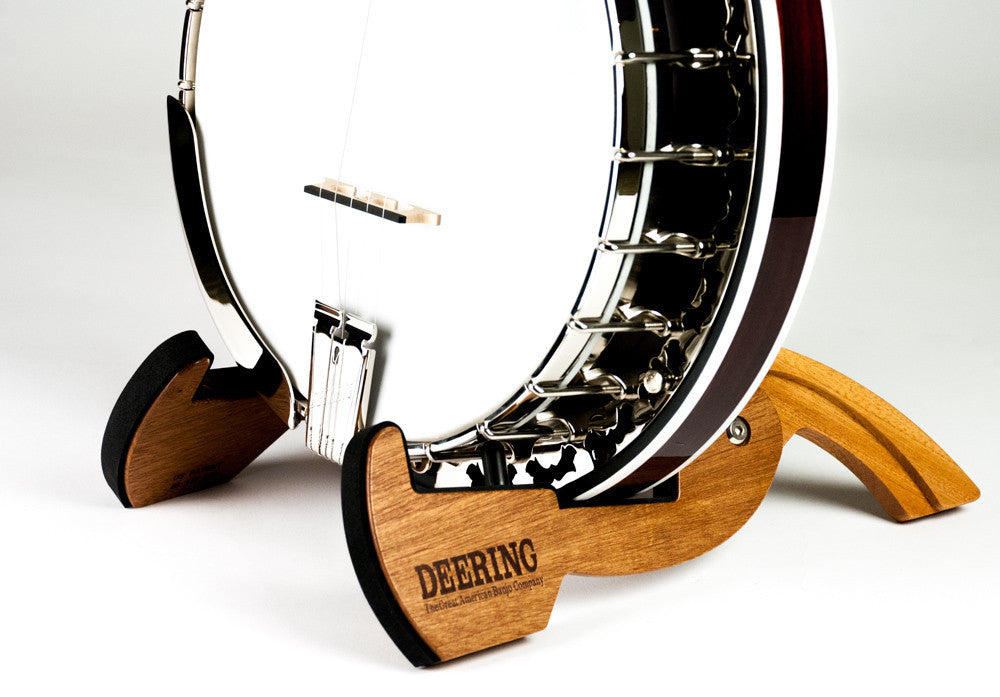 Deering worked directly with the folks at Cooperstand to make this customized Deering wooden banjo stand. Made of African Sapele Mahogany, the stand is great for both openback and resonator model banjos. This new stand has several advantages: