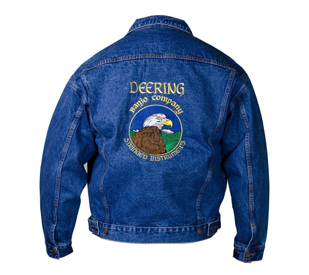 Heavy denim jacket embroidered with the Deering Eagle Logo on the back and Small Deering Banjos logo on the front. With front pockets, this jacket is comfortable and durable and warm.