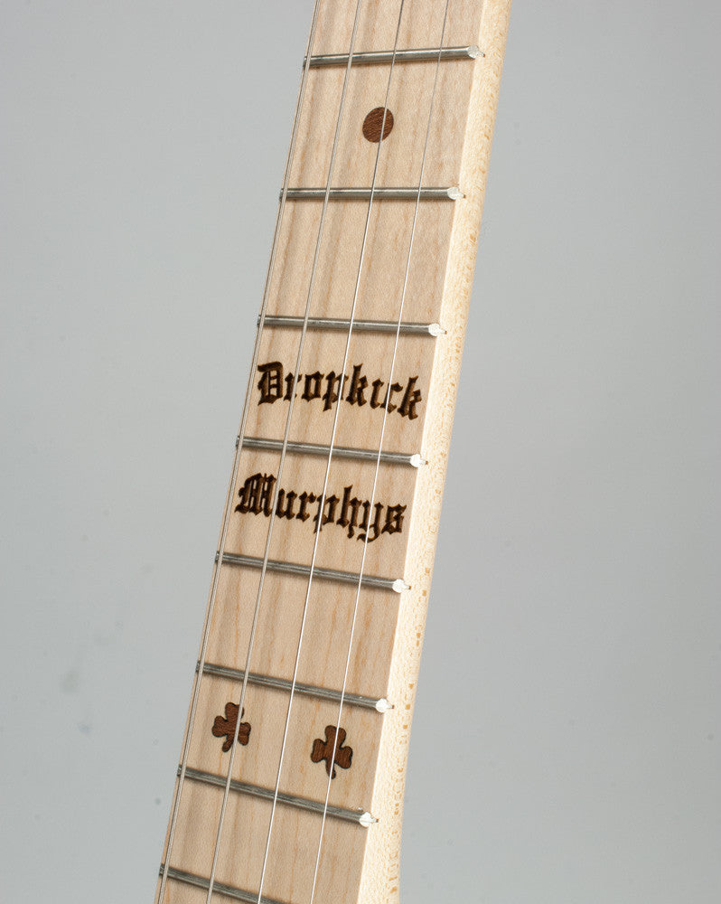 Exotic Wood Dot and Clover Inlays, with Boston banner and Dropkick Murphys engraved in neck