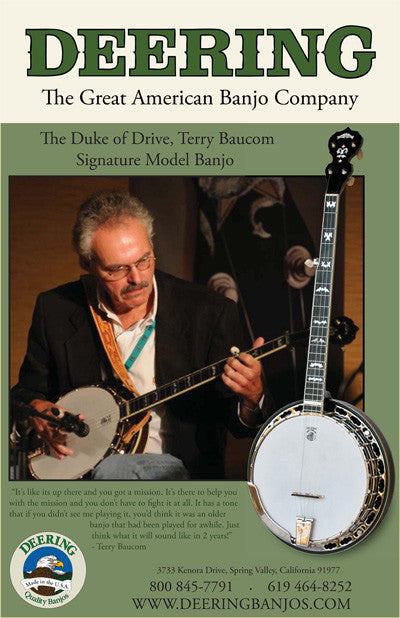 One of the great banjo masters of our time performing with his Deering banjo, Terry Baucom, the Duke of Drive, from North Carolina is featured in this 11 x 17″ color poster with a laminated protective covering.